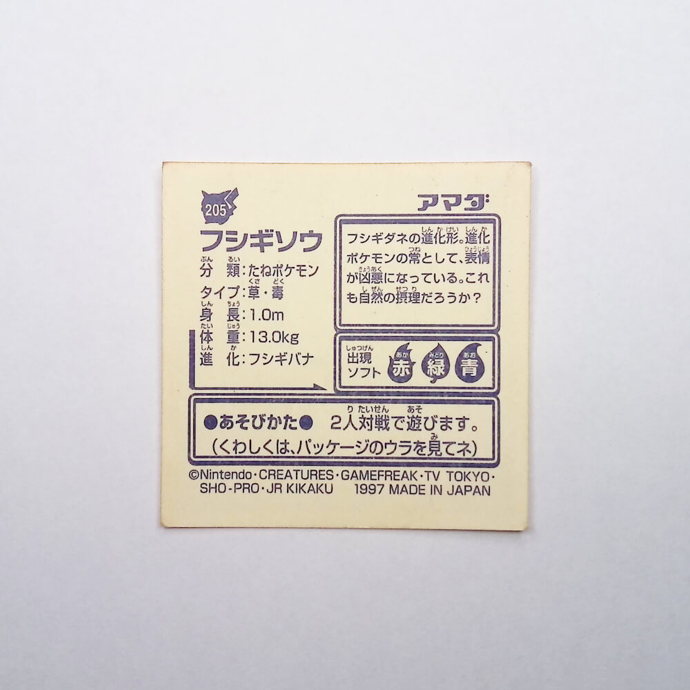 フシギソウを絵柄にしたマルチカラーノンホロのシールが、1997年にアマダより発売された「アマダ 最強シール烈伝 改」に同梱されました。